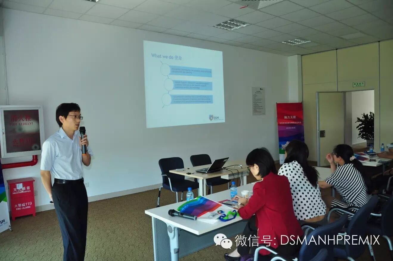 安全是帝斯曼最注重的环节,按照帝斯曼SHE(安全、健康、环境)惯例,20人以上的会议必须有专门的安全介绍,帝斯曼(中国)动物营养研发中心场地经理许大建先生为在座嘉宾介绍场地平面图和紧急撤离路线,以及在场地期间的安全注意事项。